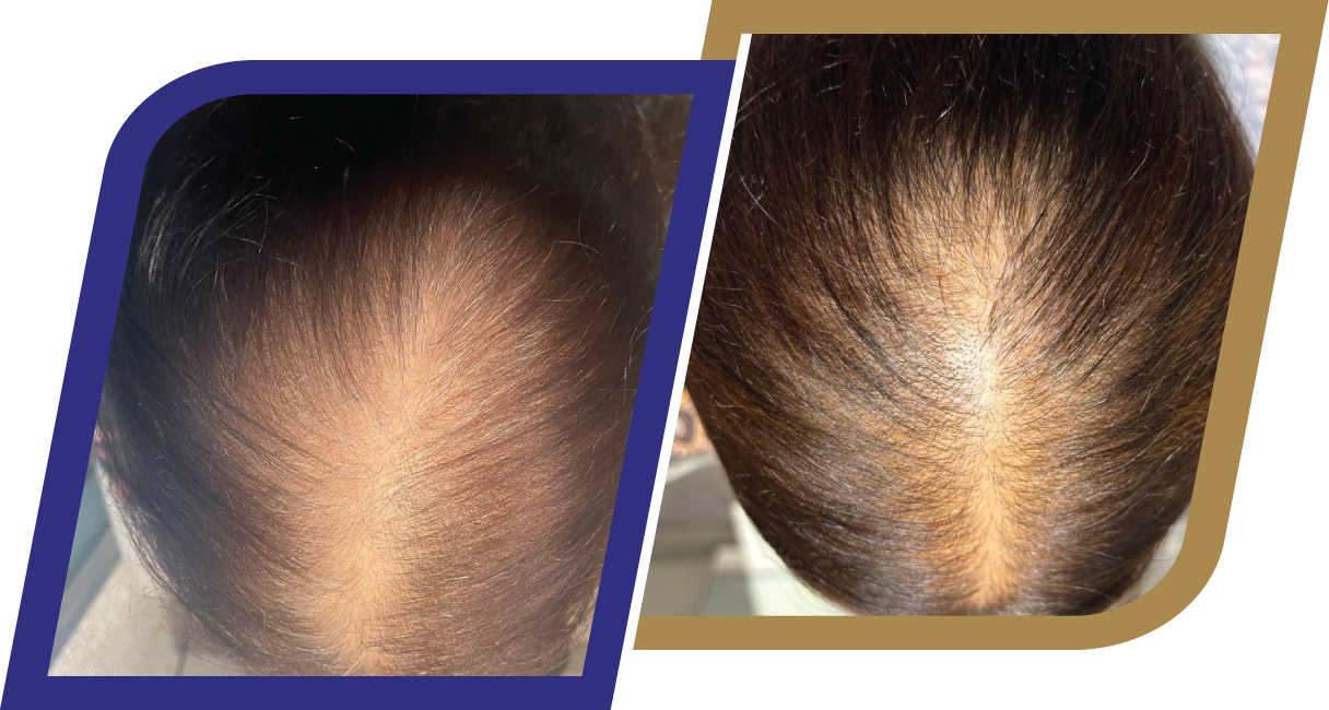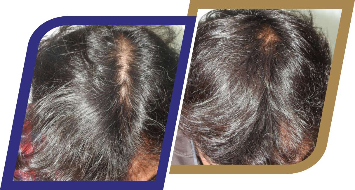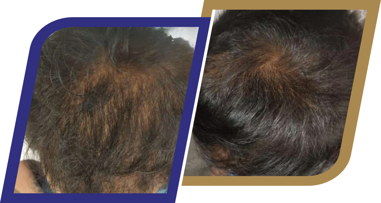 After 5 sessions of her Hairejuva journey, she restored the lost hair, permanently.